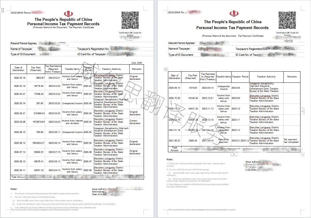 個稅申報表翻譯樣本